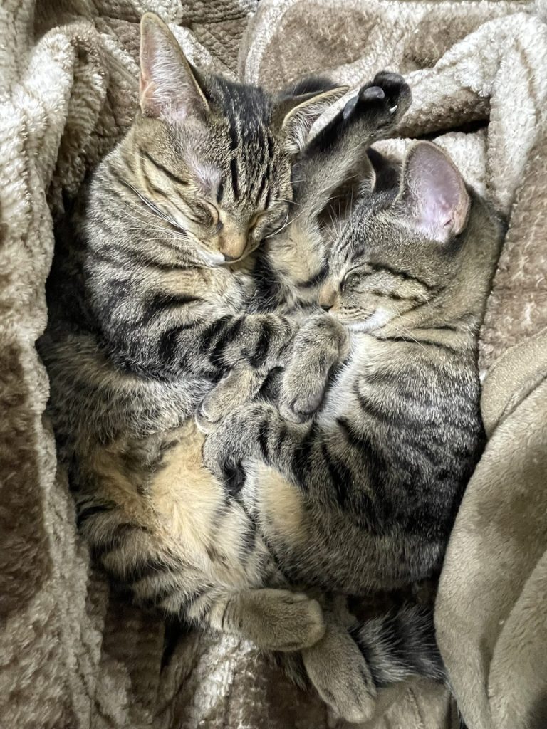 そんなふたりを犬猫タウン前橋で見つけてくれた里親さま。初めて出会った時、里親さまの服のボタンやチャックに夢中なふたりの姿が無邪気で印象的だったそうです。「できれば寂しくないようにふたり一緒に迎えたい」と兄妹の中でも特に人懐っこく、仲の良いふたりを家族にしたいと申し出てくださいました。