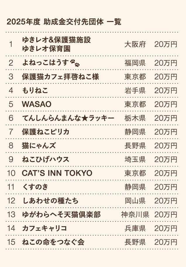 2025年度助成では、15団体に総額300万円の助成金を交付いたしました。