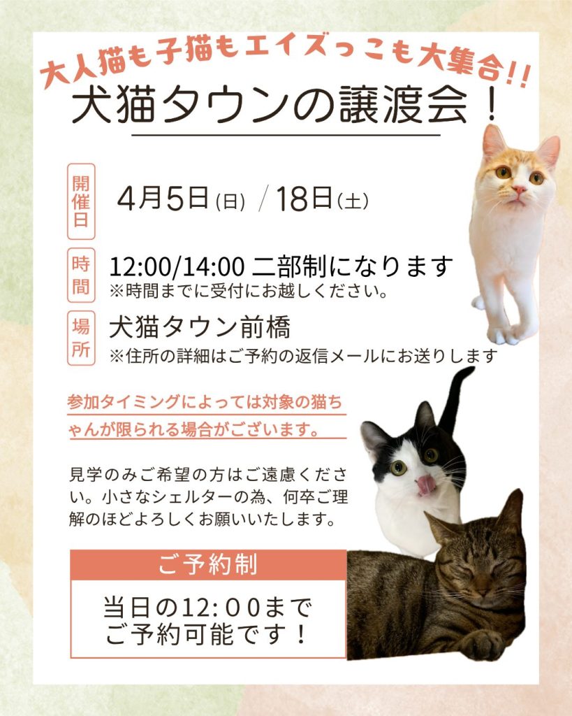 犬猫タウン前橋の保護猫ちゃんのお迎えをご検討中の方へ。 「特定の子は決まっていないけれど、会ってみたい」「誰が我が家に合うか相談したい」という方のための譲渡会を開催いたします。